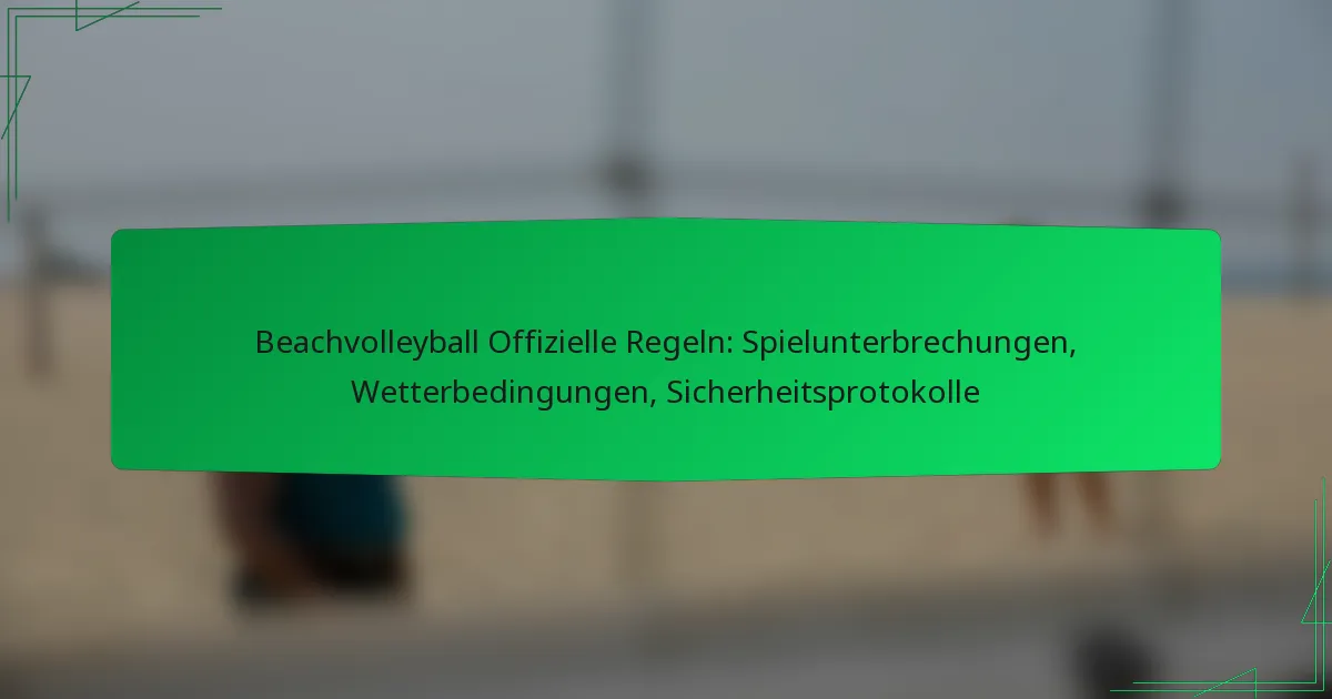 Im Beachvolleyball werden Spielunterbrechungen durch spezifische Regeln geregelt, die Szenarien wie Wetterbedingungen, Spielerverletzungen und Auswechslungen ansprechen. Diese Vorschriften sind entscheidend für die Aufrechterhaltung des fairen Spiels und die Sicherheit aller Teilnehmer. Wetter kann das Spielgeschehen erheblich beeinflussen, was etablierte Protokolle erforderlich macht, um die Spieler zu schützen und die Integrität des Spiels zu wahren. Die Einhaltung von Sicherheitsprotokollen ist unerlässlich, um Verletzungen zu vermeiden und eine sichere Spielumgebung zu fördern.